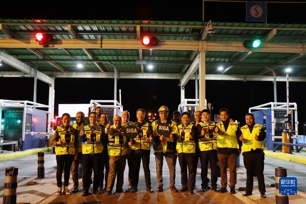 2月15日凌晨,中國鐵建國際集團項目運營團隊與項目監理及合作單位人員在智利比奧比奧大區5號公路的圣克拉拉主收費站合影。