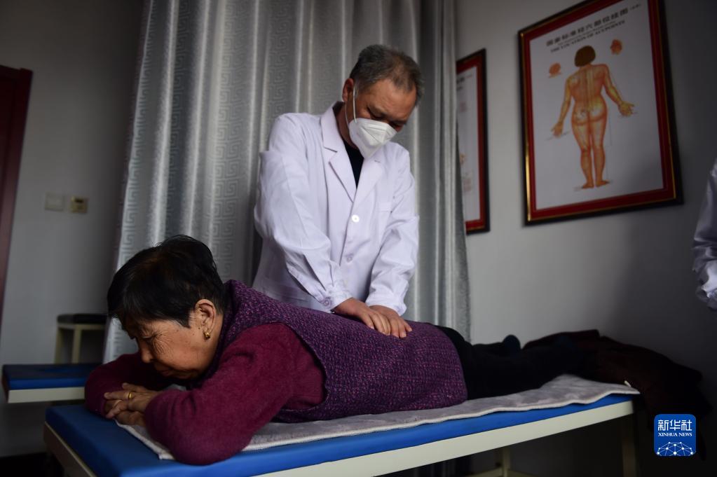 2月16日,孟村回族自治縣辛店鎮衛生院“國醫堂”中醫為患者進行推拿治療。
