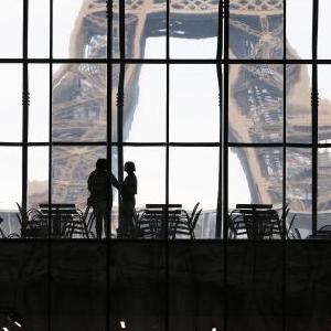 2月16日,在位于法國巴黎埃菲爾鐵塔附近的臨時大皇宮,人們在ART CAPITAL藝術展上參觀。