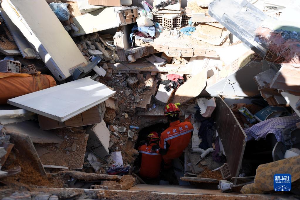 2月9日,中國救援隊隊員在土耳其哈塔伊省安塔基亞市開展救援工作。