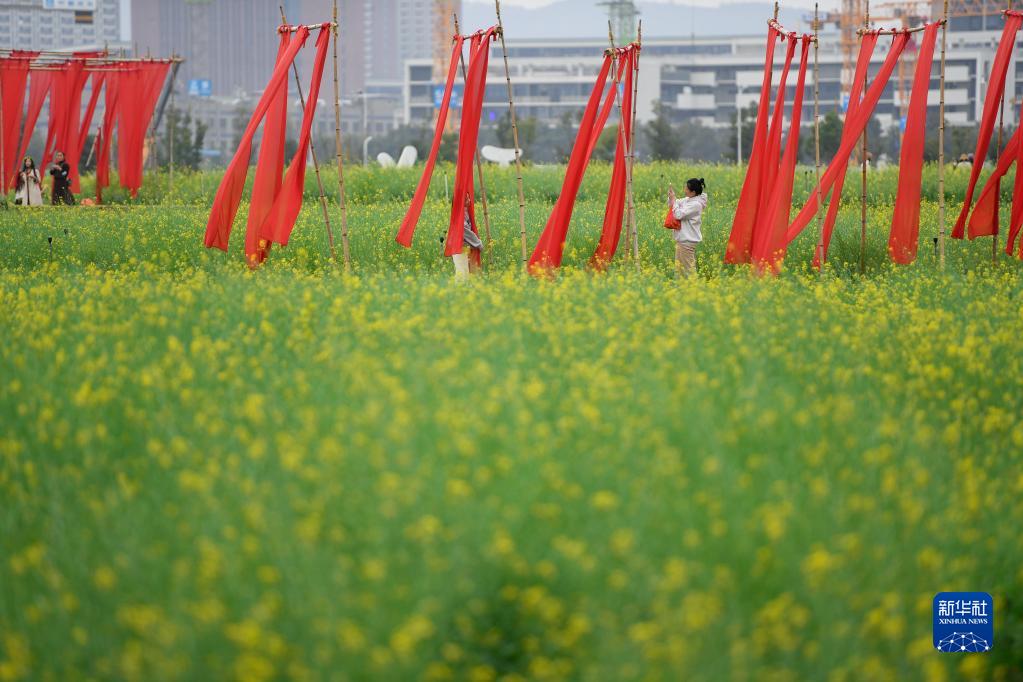 近日,深圳光明區歡樂田園的油菜花開放,吸引市民踏青賞春。