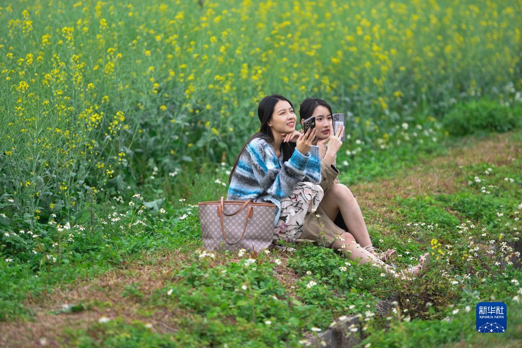 近日,深圳光明區歡樂田園的油菜花開放,吸引市民踏青賞春。