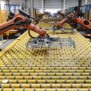 2月17日,秦皇島一家玻璃企業的機器手在工作中。
