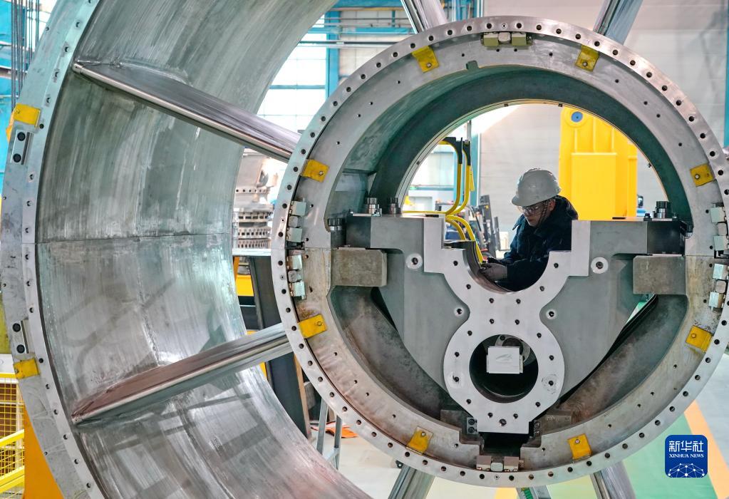 2月16日,哈電集團(秦皇島)重型裝備有限公司的工人在生產車間工作。