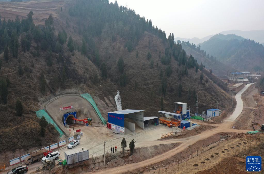 這是2月7日拍攝的位于陜西省商洛市商州區的西氣東輸三線工程陜西段廖峪溝隧道施工現場(無人機照片)。