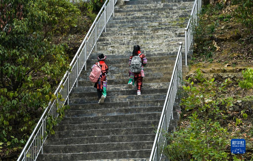 2月16日,貴州省從江縣西山鎮中寨教學點學生在放學途中。