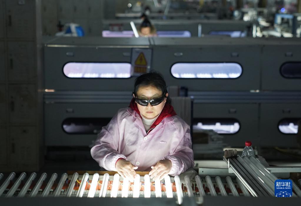 2月16日,工人在江西合力照明電器有限公司生產線上工作。