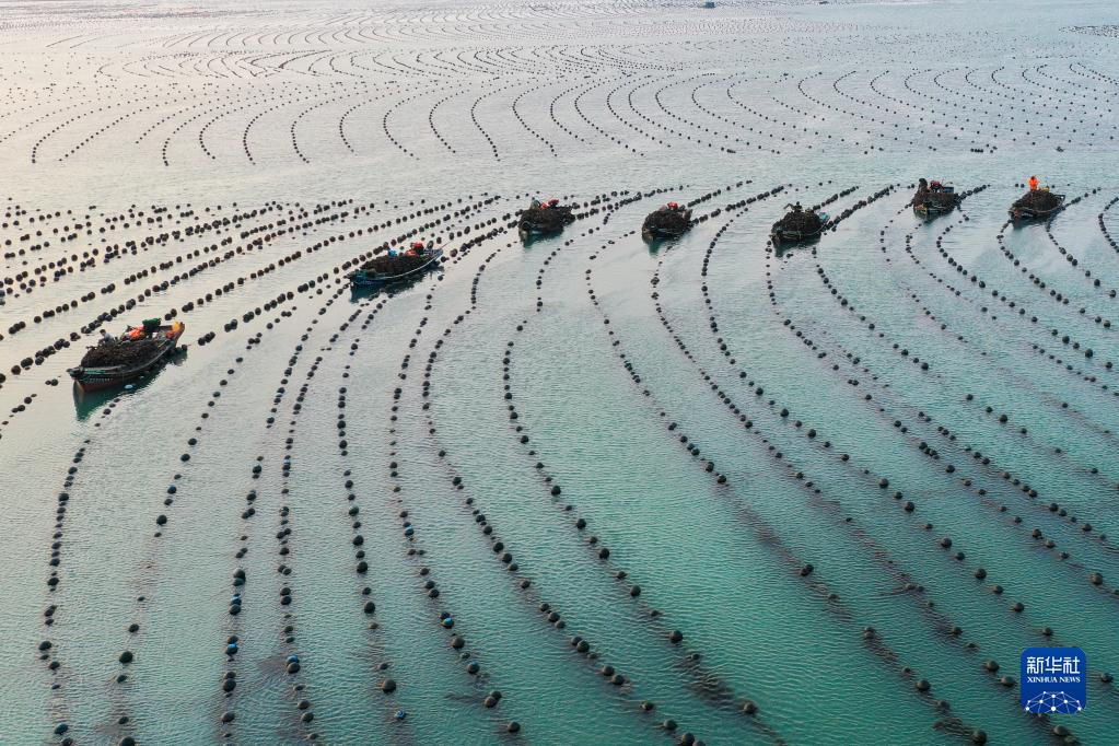 目前正值山東威海榮成市春季海上漁業養殖管護時節,各海域四十多萬畝養殖海區內,漁業工人駕駛船只穿梭往來,進行浮漂更換、投喂餌料等作業,一派“耕海牧漁”繁忙景象。
