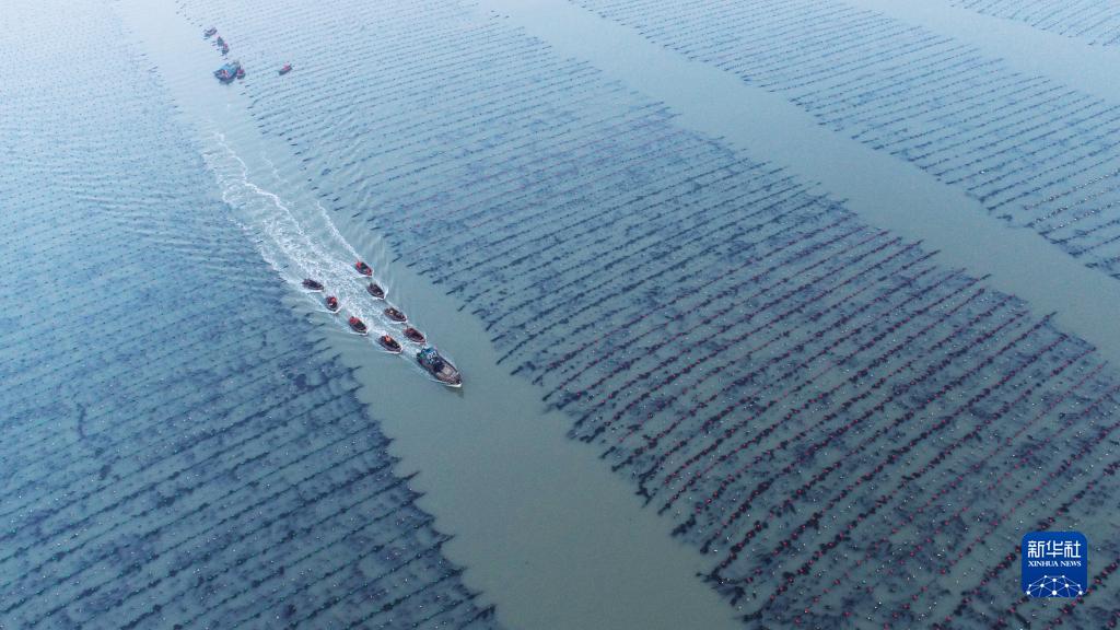 目前正值山東威海榮成市春季海上漁業養殖管護時節,各海域四十多萬畝養殖海區內,漁業工人駕駛船只穿梭往來,進行浮漂更換、投喂餌料等作業,一派“耕海牧漁”繁忙景象。