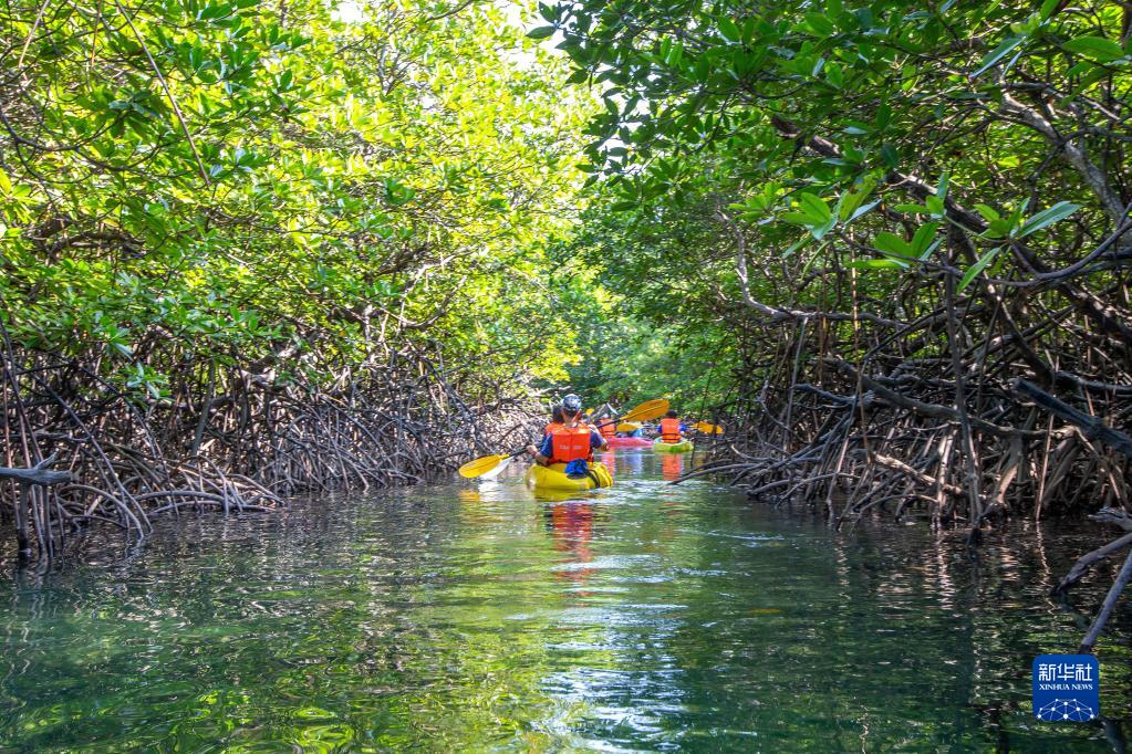 2月16日,游客在泰國皮皮島國家公園觀賞紅樹林。