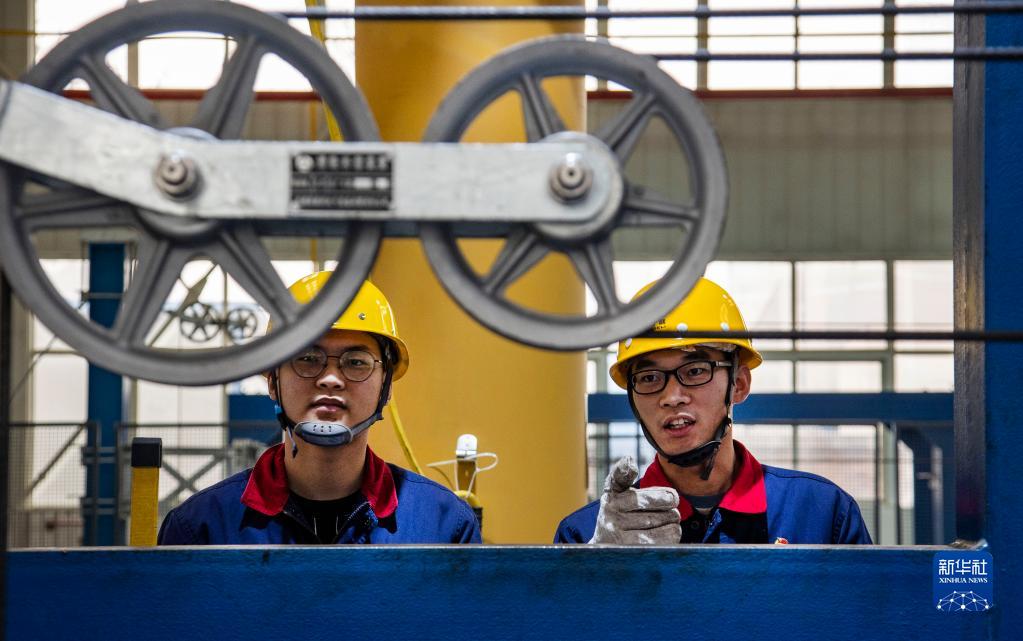2月15日,在位于陜西省寶雞市的中國中鐵電氣化局高鐵電氣的生產車間,技術人員在調試滑輪裝置。
