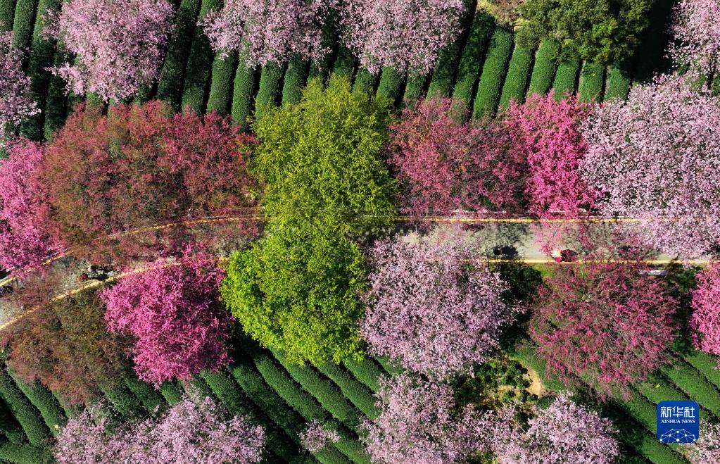 2月17日航拍的臺品櫻花茶園(無人機照片)。
