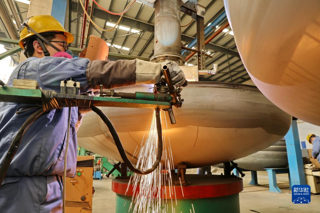 2月16日,工人在位于興仁鎮的南通四方罐式儲運設備制造有限公司標罐車間忙碌。