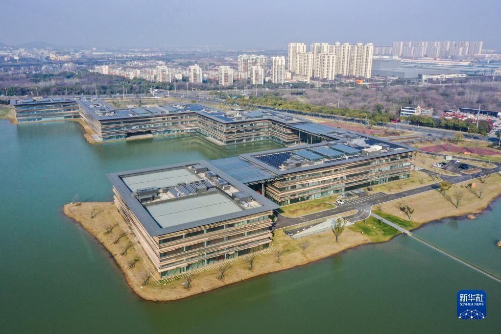 由中國科學院物理研究所與溧陽市合作成立的長三角物理研究中心,致力于先進儲能技術產業化,這是研究中心的外景(2月16日攝,無人機照片)。