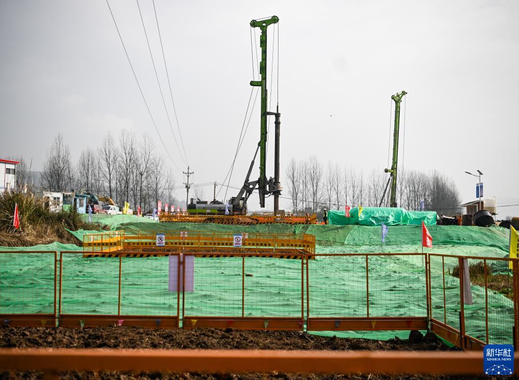 2月17日,在銅缽河特大橋施工現場,工人操作打樁機施工。