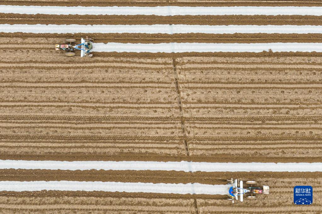 初春時節,湖北省各地農民搶抓農時,翻整田地,播種施肥,呈現一派繁忙景象。