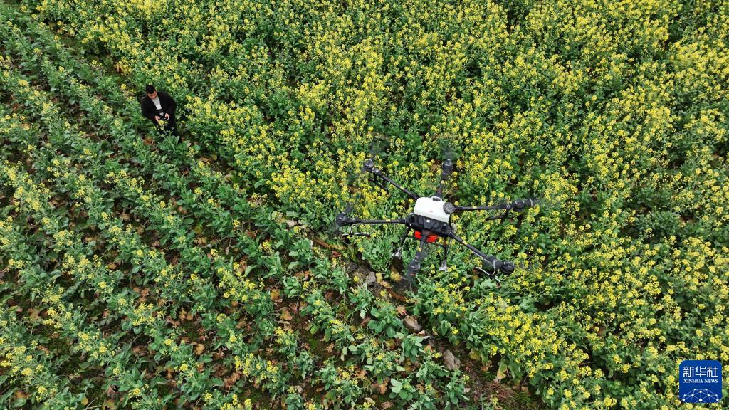 早春時節,貴州省六盤水市六枝特區木崗鎮16000余畝油菜花競相綻放。當地村民積極整地、育苗,并利用植保無人機進行春管,一派繁忙景象。