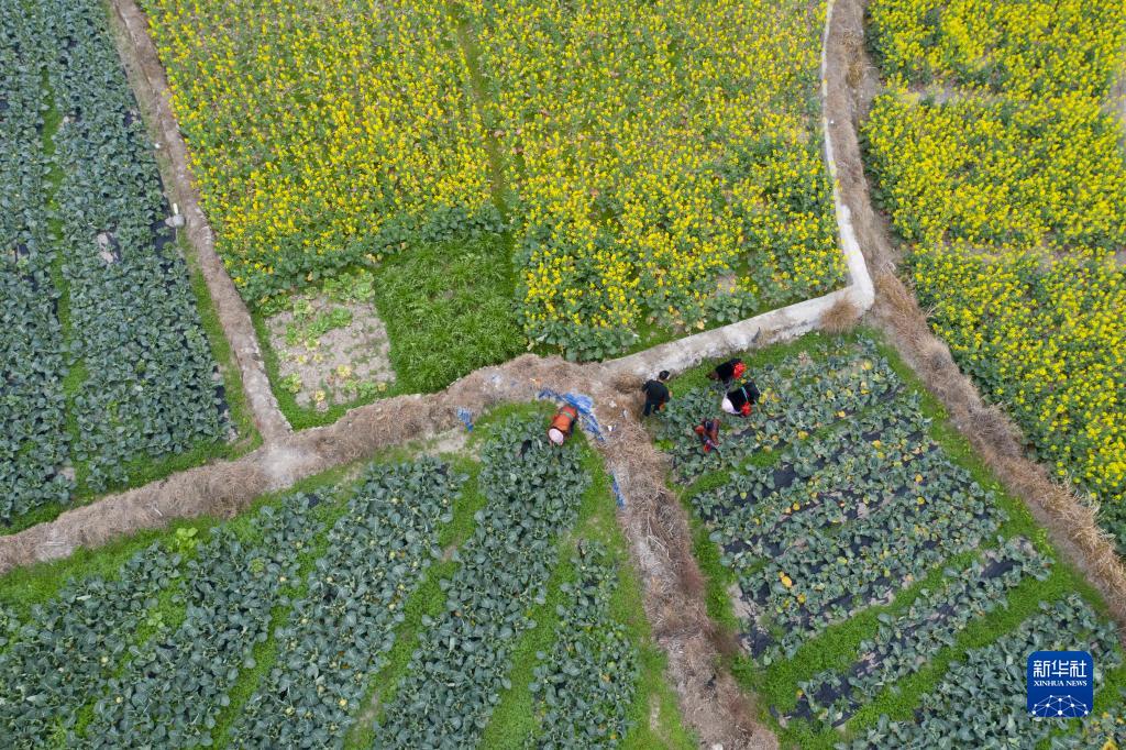 2月17日,貴州省從江縣貫洞鎮的農民在地里勞作(無人機照片)。