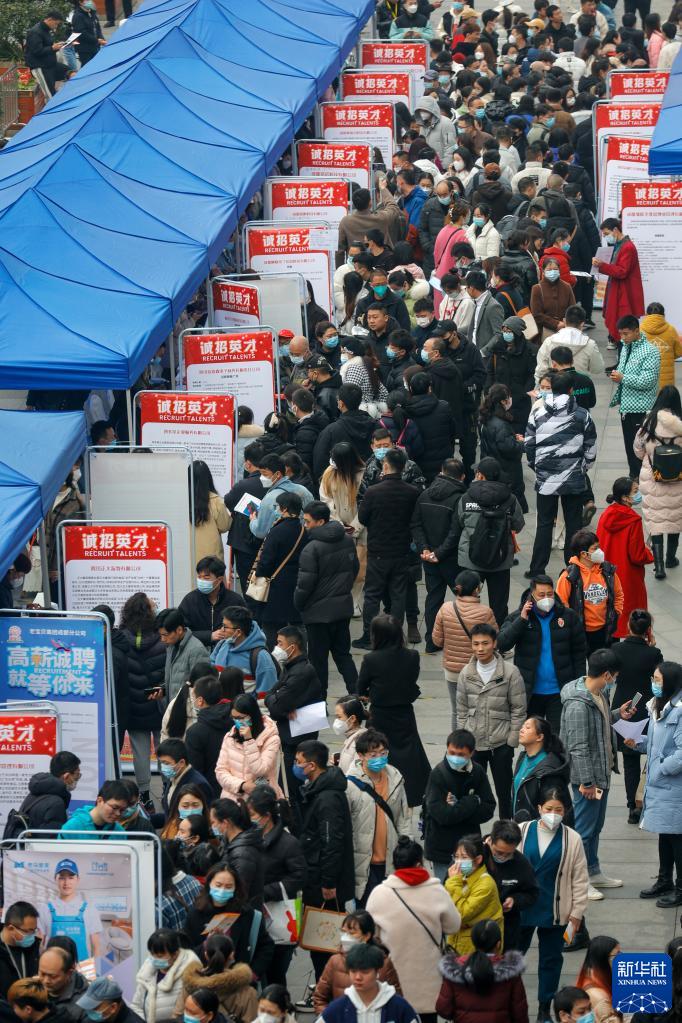 2月17日,人們在中國成都人力資源服務產業園查看招聘信息,尋找工作機會。