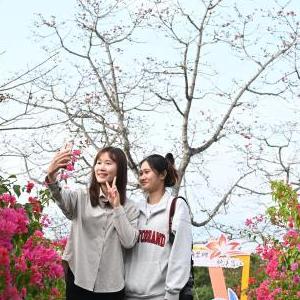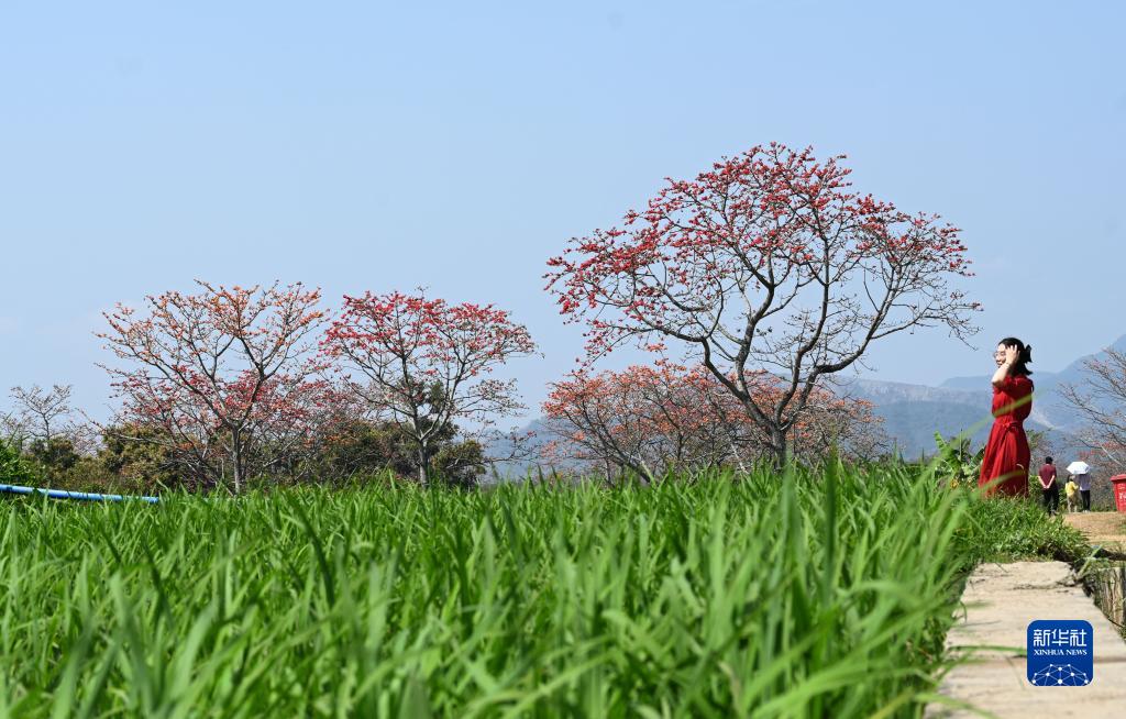 眼下正值海南昌江黎族自治縣木棉花盛開時節,不少游客前來踏青賞花。