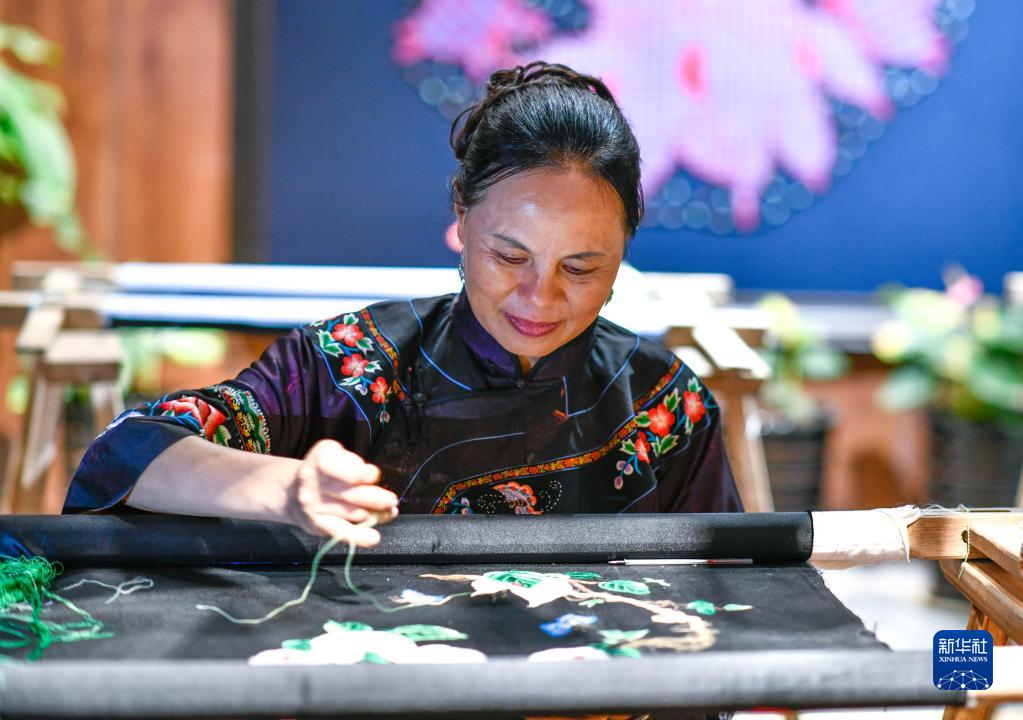 “我帶動起來的繡娘比較多,白天忙完公司的事,晚上就挨家挨戶到她們家里,年老的、年輕的,坐在一起聊到很晚,把各種各樣的苗繡拿來對比,有時候大家還就刺繡技藝來上一番熱烈的討論?!笔惼秸f。除了同繡娘交流切磋技藝外,她還以此為契機,深入苗鄉群眾了解非物質文化遺產傳承面臨的挑戰。