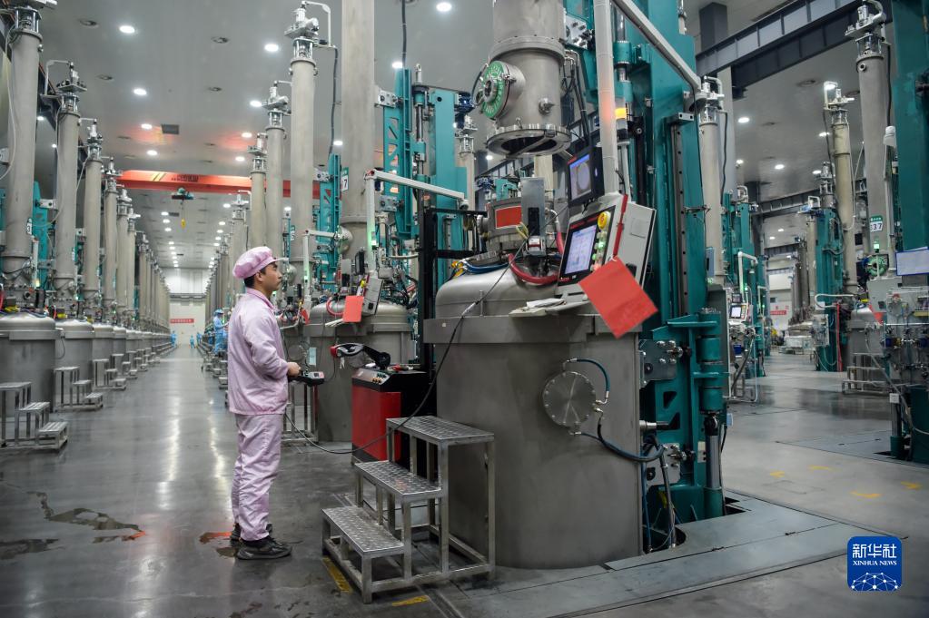 2月17日,在烏海市京運通新材料科技有限公司,工人在生產車間作業。