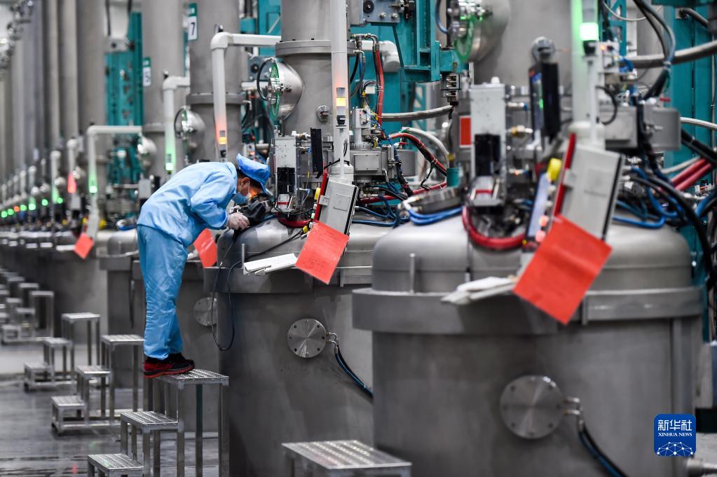 2月17日,在烏海市京運通新材料科技有限公司,工人在生產車間作業。