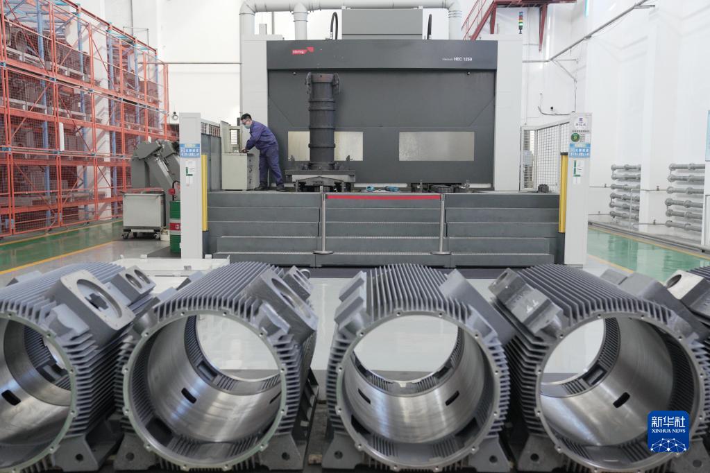 2月16日,在哈電集團佳木斯電機股份有限公司的數字化車間內,工作人員在進行作業。