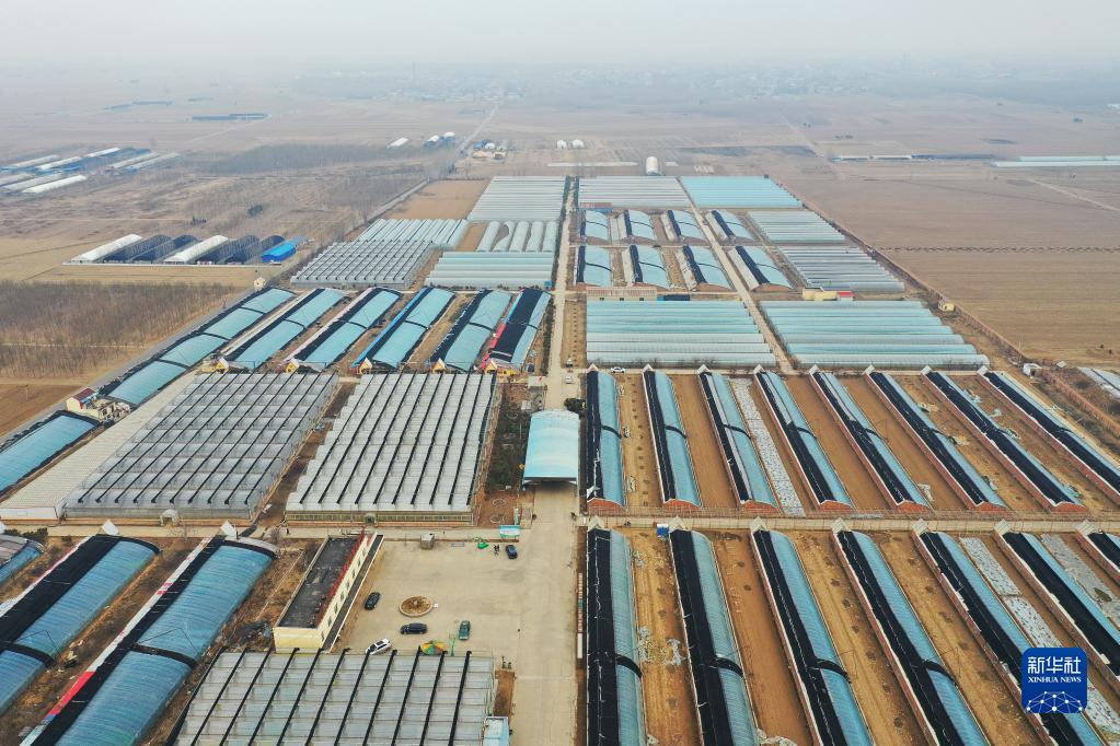 2月17日拍攝的河北省肅寧縣綠苑蔬菜專業合作社育苗基地(無人機照片)。