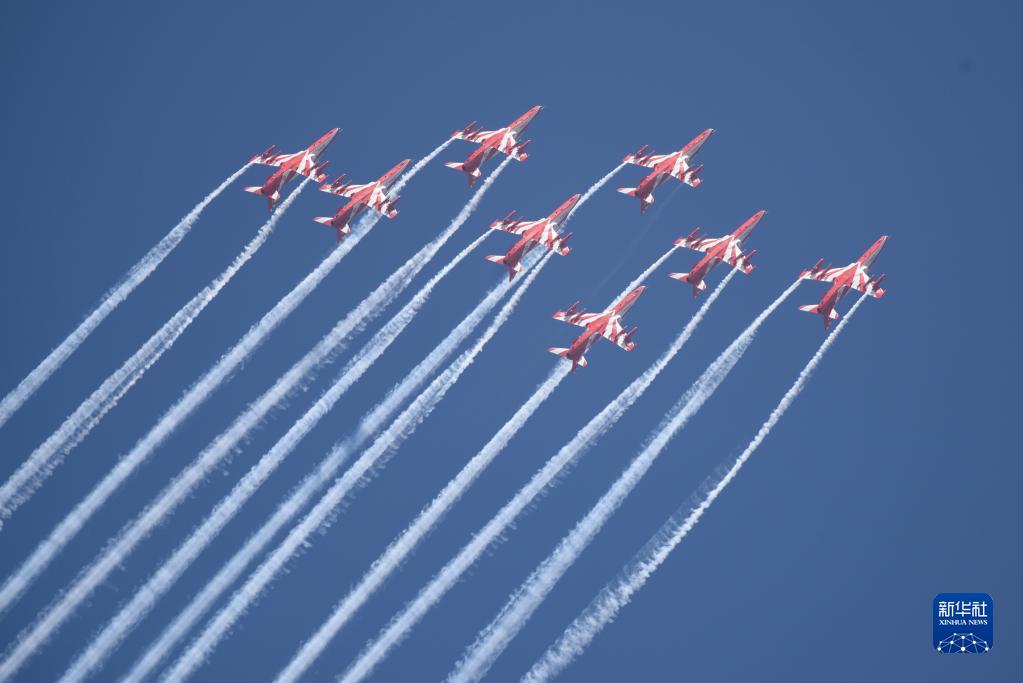 2月13日,在印度班加羅爾耶拉漢卡空軍基地,印度空軍“陽光”飛行表演隊參加印度航空展表演。