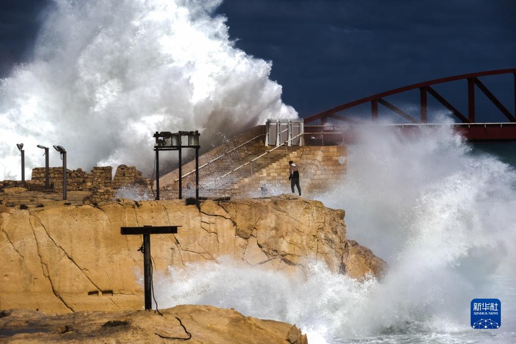 2月10日,在馬耳他斯利馬,大浪拍打海岸。