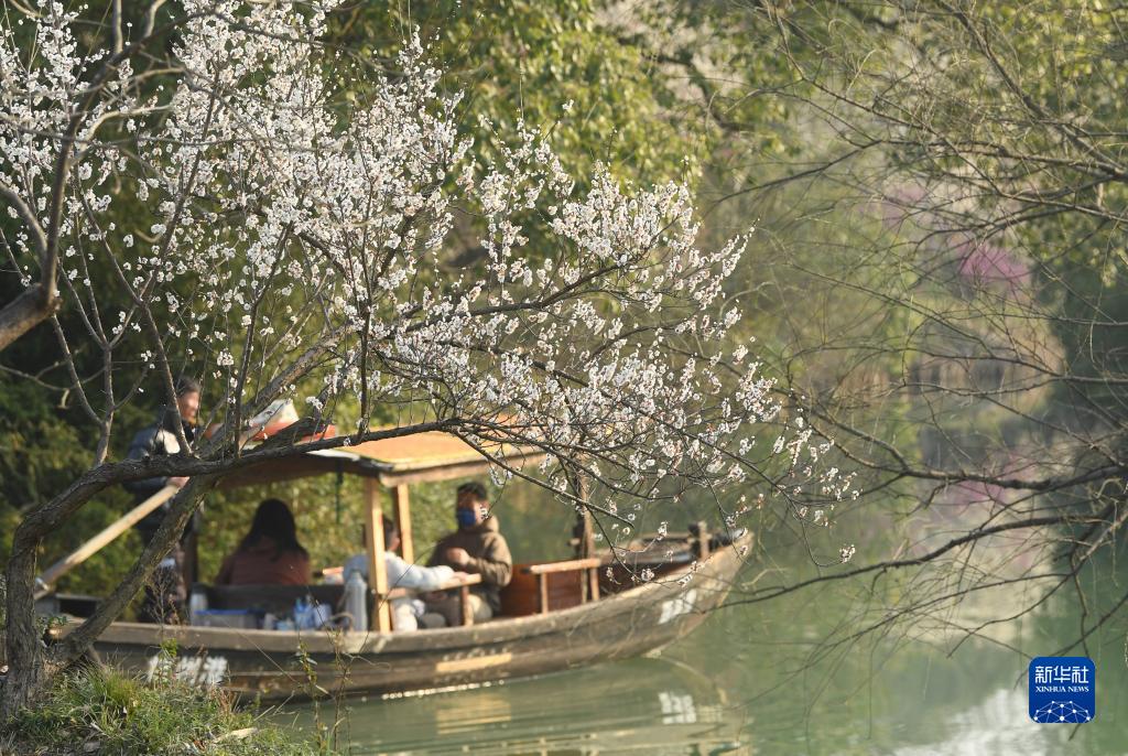 隨著氣溫升高,浙江省杭州市西溪濕地內梅花盛開,迎來大批游客前來觀賞。西溪濕地共有梅花2萬多株。