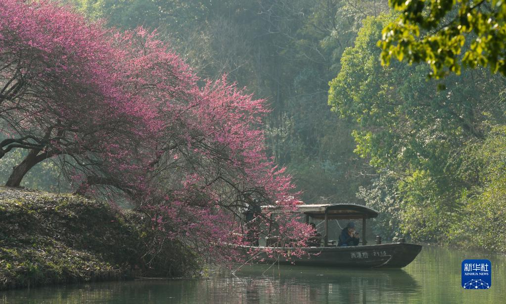 隨著氣溫升高,浙江省杭州市西溪濕地內梅花盛開,迎來大批游客前來觀賞。西溪濕地共有梅花2萬多株。