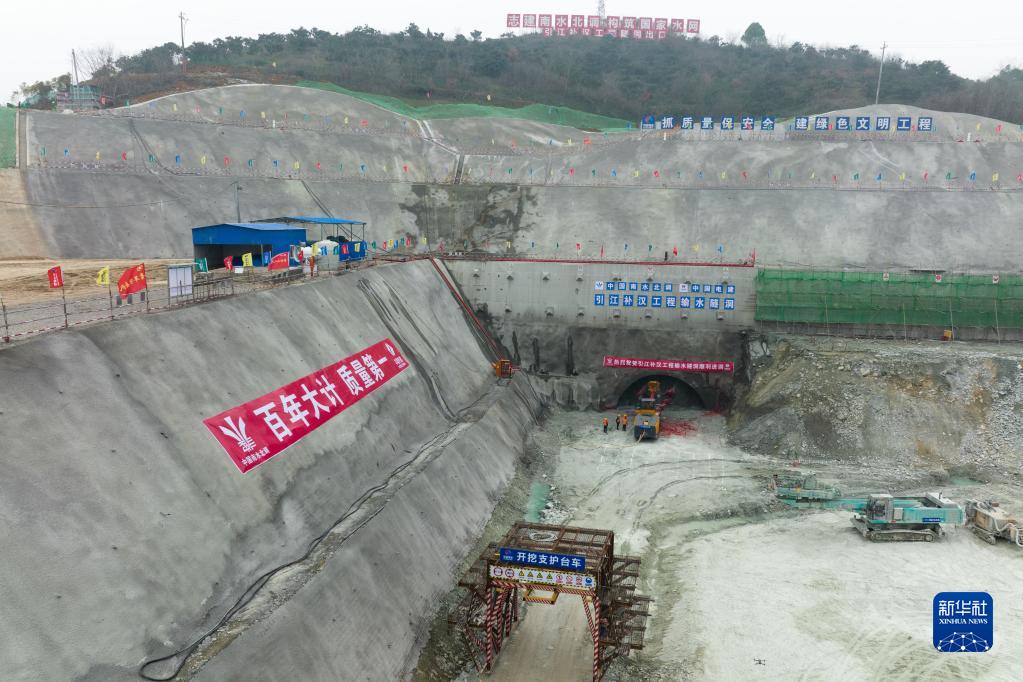 當日,隨著多臂鑿巖臺車在引江補漢工程輸水總干線出口處啟動鉆孔施工,南水北調后續工程首個開工項目——引江補漢工程正式進入主體隧洞施工階段。