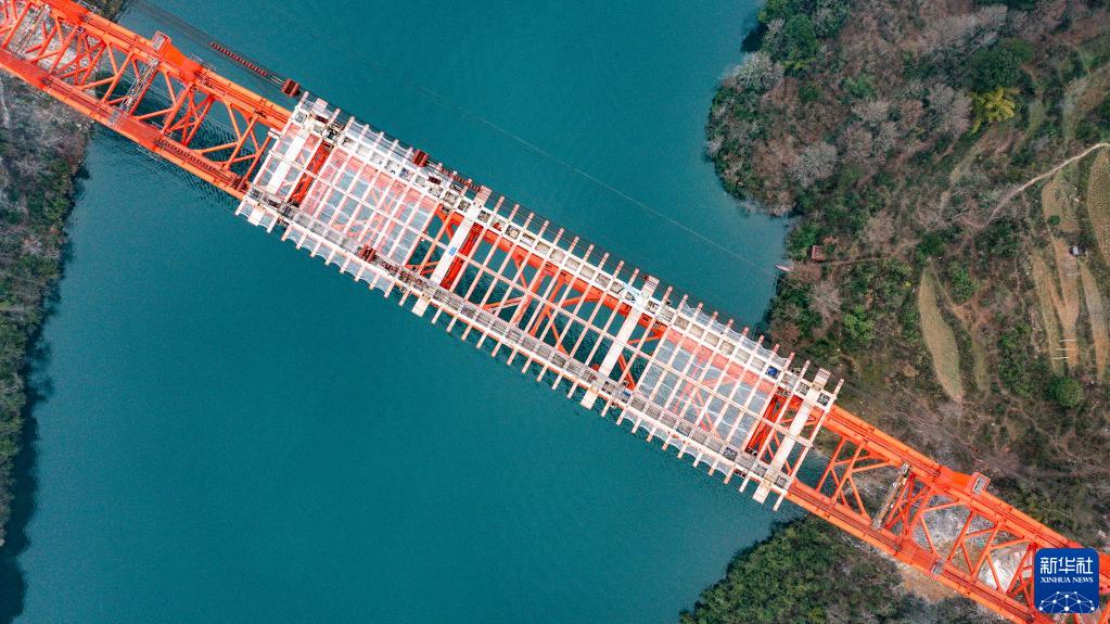 正在進行橋面系施工的德余高速烏江特大橋(2月17日攝,無人機照片)。