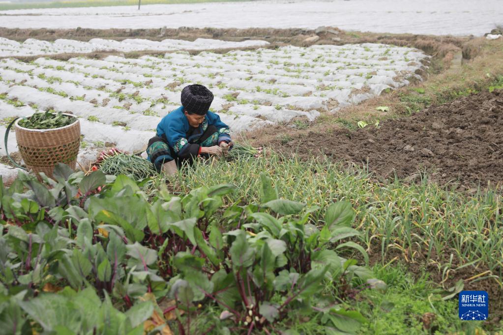 2月18日,在湖南省湘西土家族苗族自治州吉首市乾州街道西門口村,村民在田間勞作。