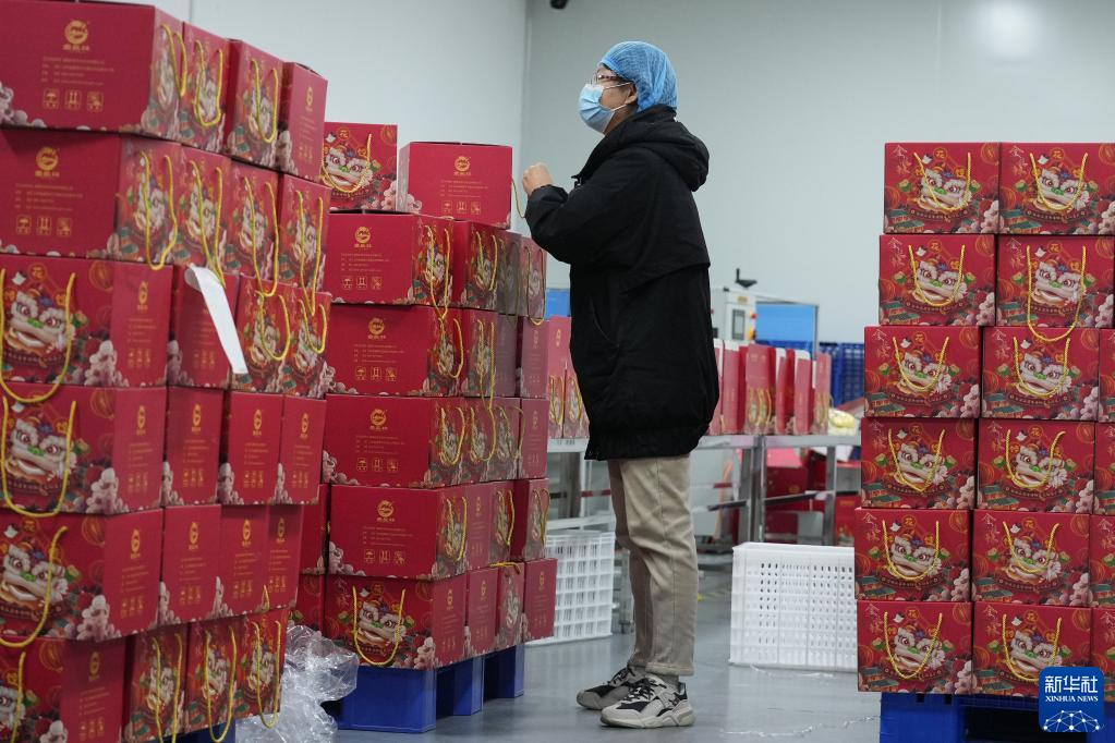 2月17日,威海長林生態農業有限公司員工清點即將發運的花餑餑產品。