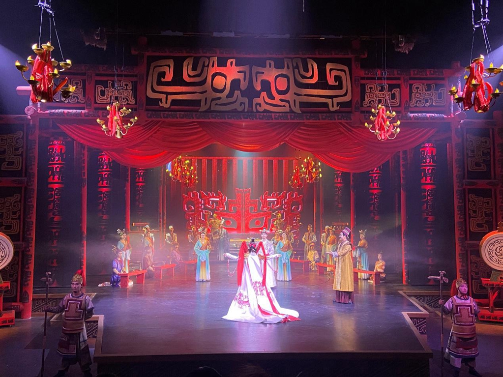 2月17日晚,劇目《殷墟遺夢》在河南安陽殷墟考古文旅小鎮上演。該劇目以殷商文化結合小鎮旅游業態,作為輸出文化內核,打造文化交流平臺,成為安陽文化的新名片。新華網 宿鑫 攝