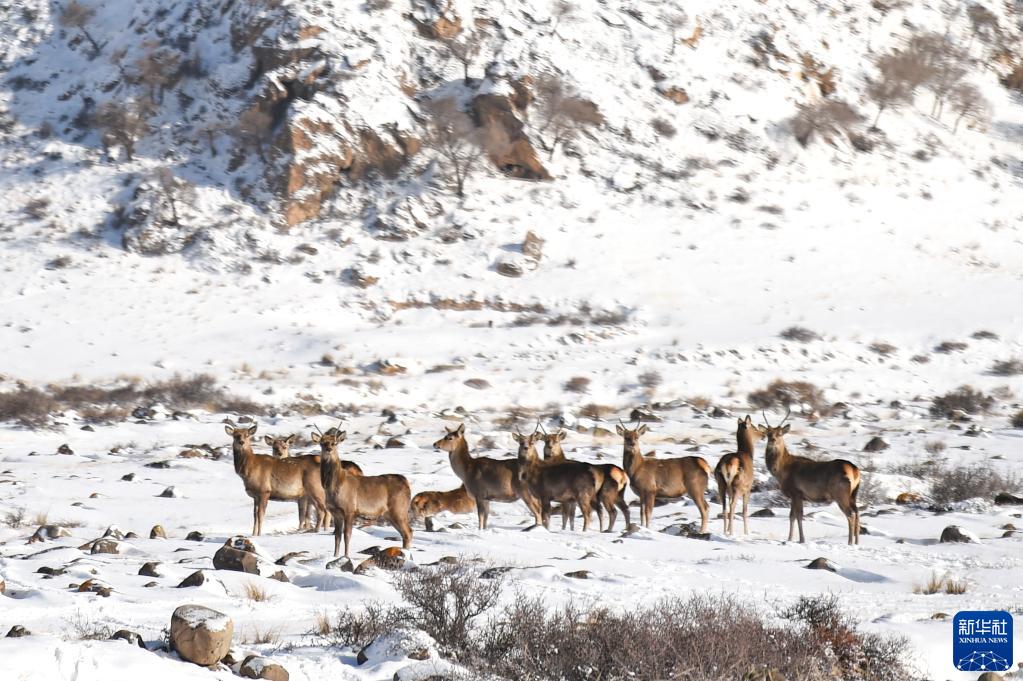 2月18日在內蒙古賀蘭山國家級自然保護區內拍攝的馬鹿。
