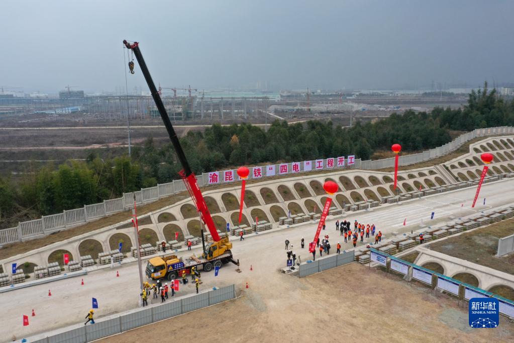 當日,在渝昆高鐵重慶永川區施工現場,施工人員將首根接觸網桿吊裝到位,標志著渝昆高鐵川渝段供電、通信、信號、電力“四電”工程正式啟動。渝昆高鐵是全國鐵路網“八縱八橫”主通道之一的京昆通道的重要組成部分,設計時速350公里。