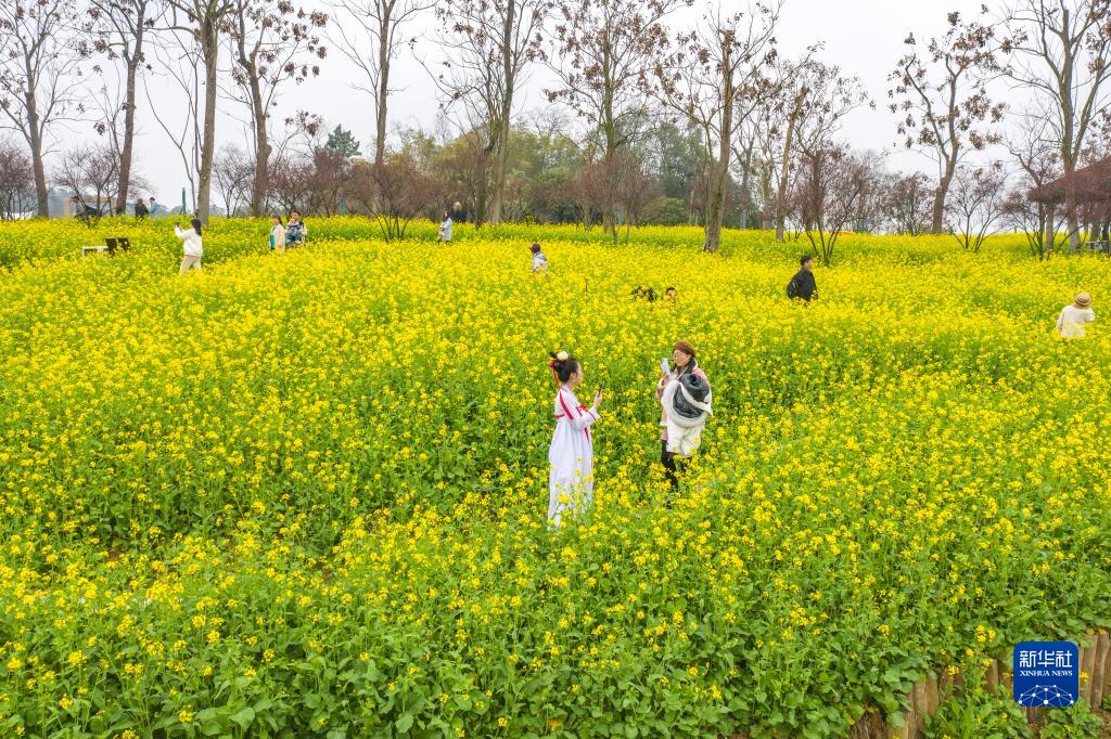 近日,重慶市巴南區二圣鎮集體村云林天鄉景區的油菜花迎春綻放,吸引眾多游客前來觀賞。
