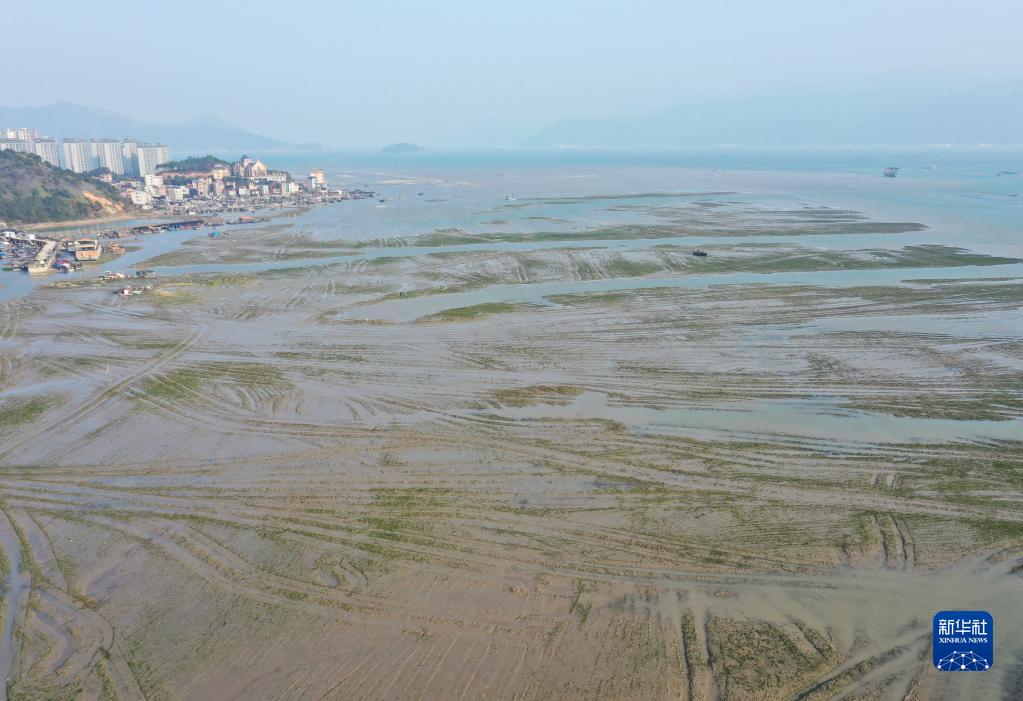 這是2023年2月15日在寧德市蕉城區漳灣鎮附近拍攝的互花米草整治后的灘涂(無人機照片)。