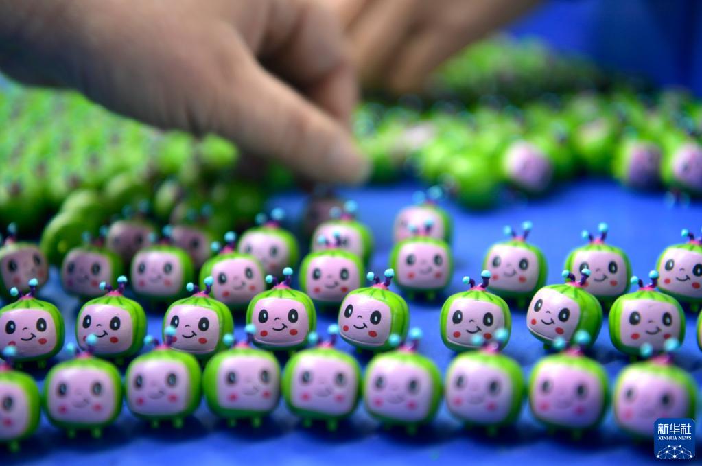 2月18日,在宣恩縣李家河鎮塘坊村一家工藝品公司,工人在生產出口玩具。