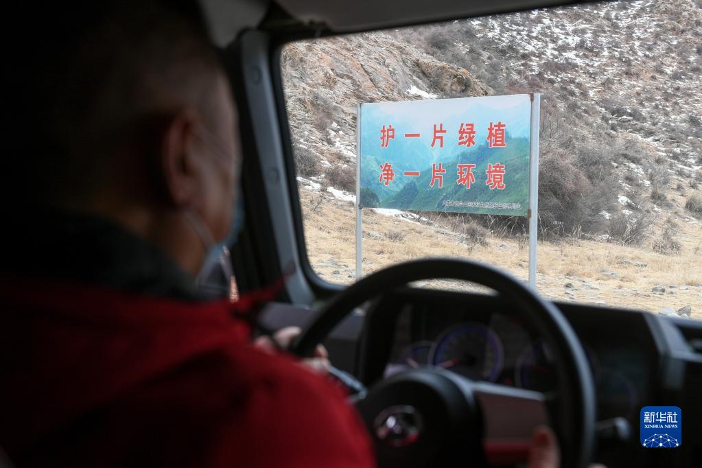 2月17日,哈拉烏管理站的管護員駕車在保護區內巡護。