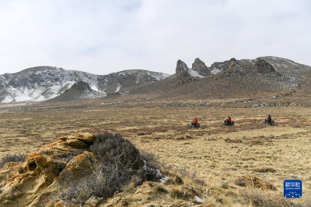 2月17日,哈拉烏管理站門洞子管護站的管護員駕駛摩托車在保護區內巡護。