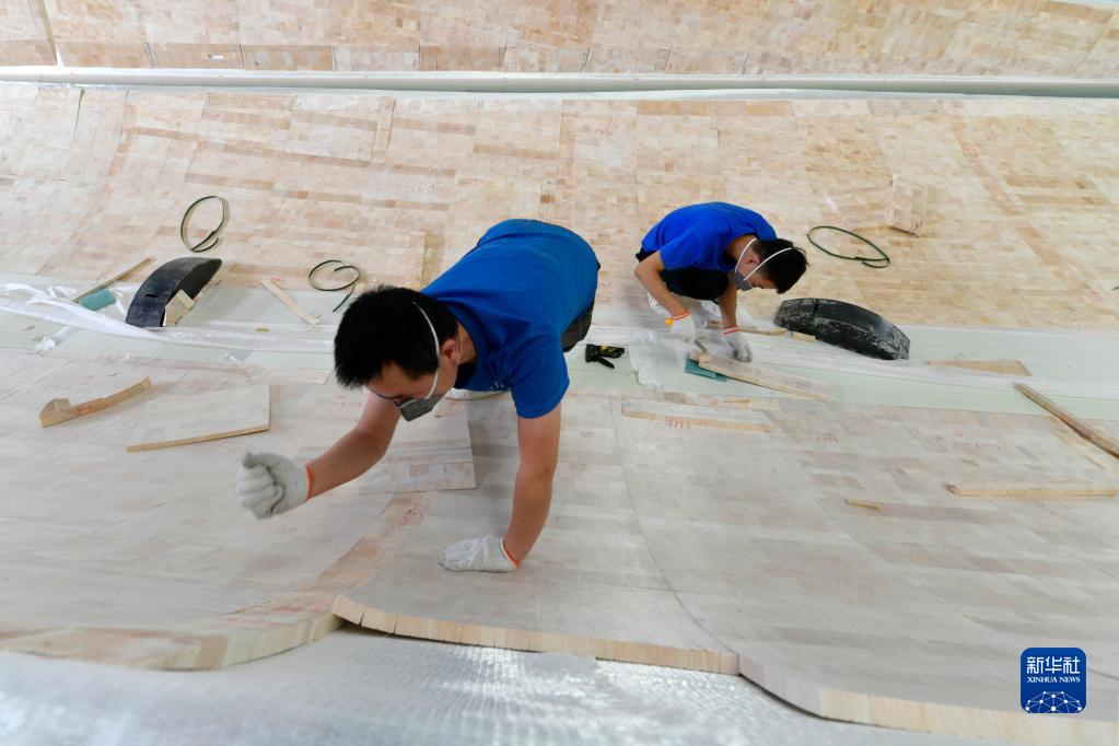 2月18日,在武威市涼州區一家風電裝備生產企業,工人在風機葉片生產線上工作。