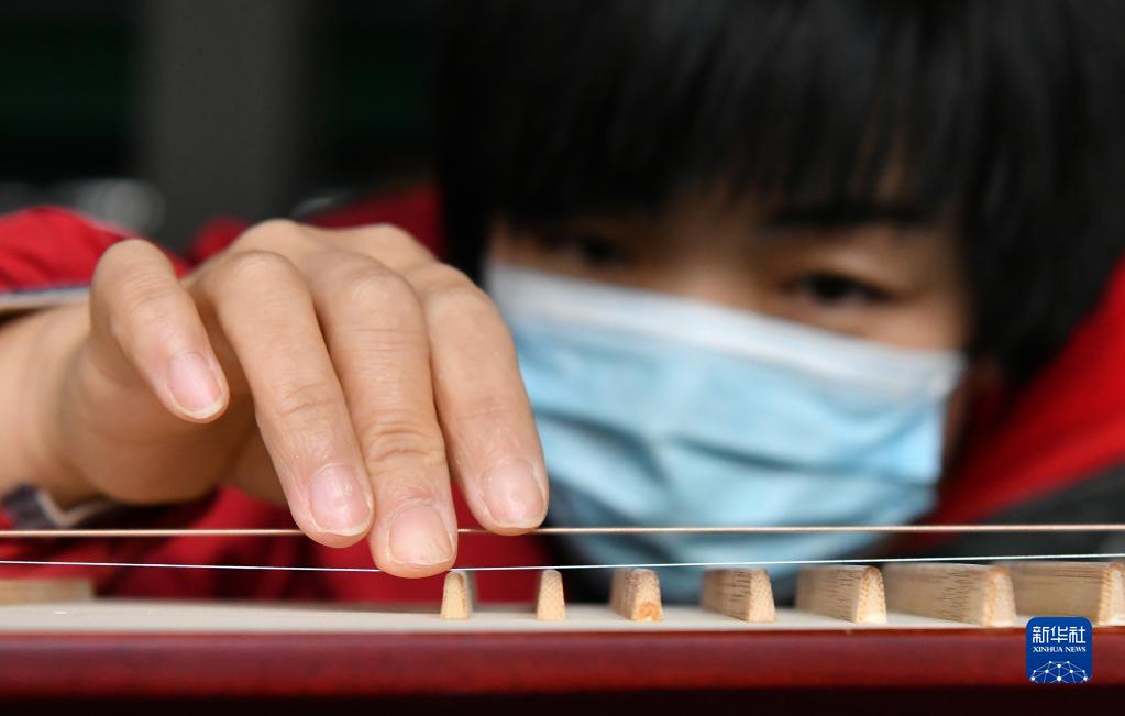 2月18日,河北省肅寧縣一家民族樂器生產企業的工人在生產車間內調音。