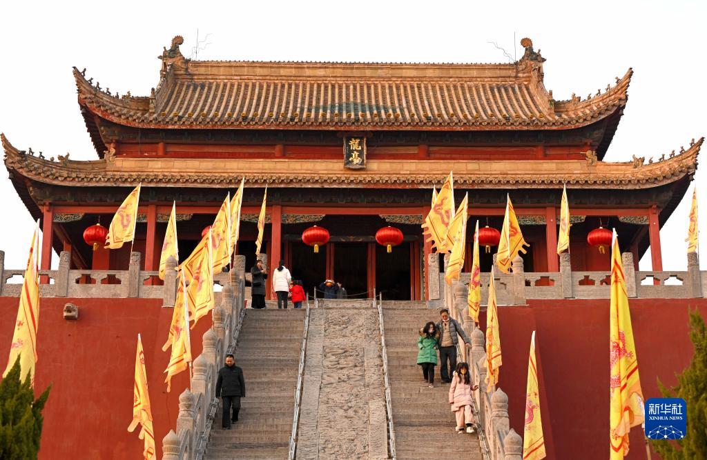 游客在開封龍亭公園內游玩(2月15日攝)。