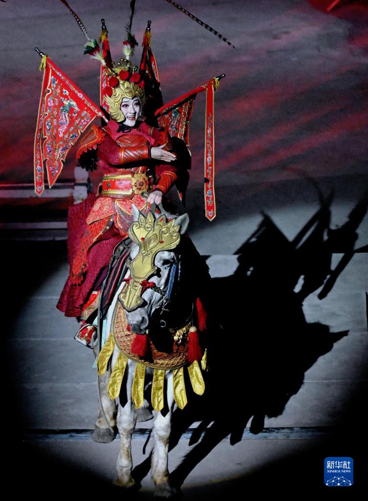演員在開封清明上河園景區內表演(2月14日攝)。