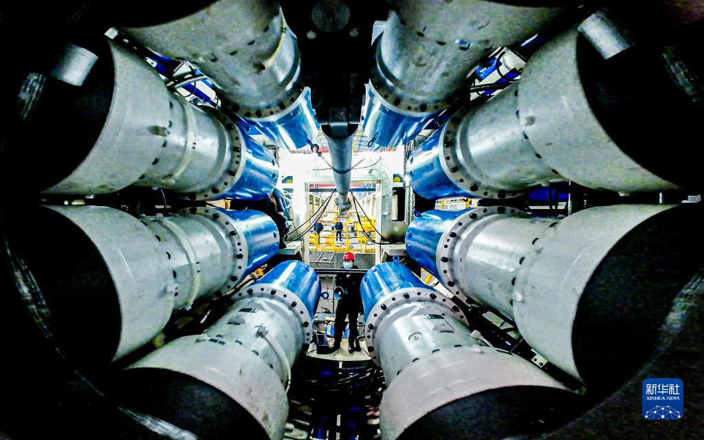 2月18日拍攝的位于遼寧省沈陽市的北方重工有限公司盾構機生產車間(無人機照片)。